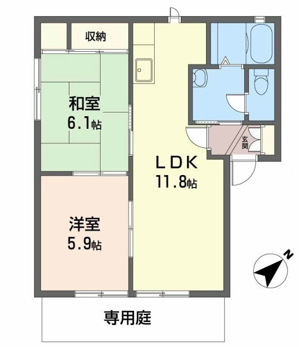 LDK 12.0帖/洋室 6.1帖/洋室 4.5帖 - 向き